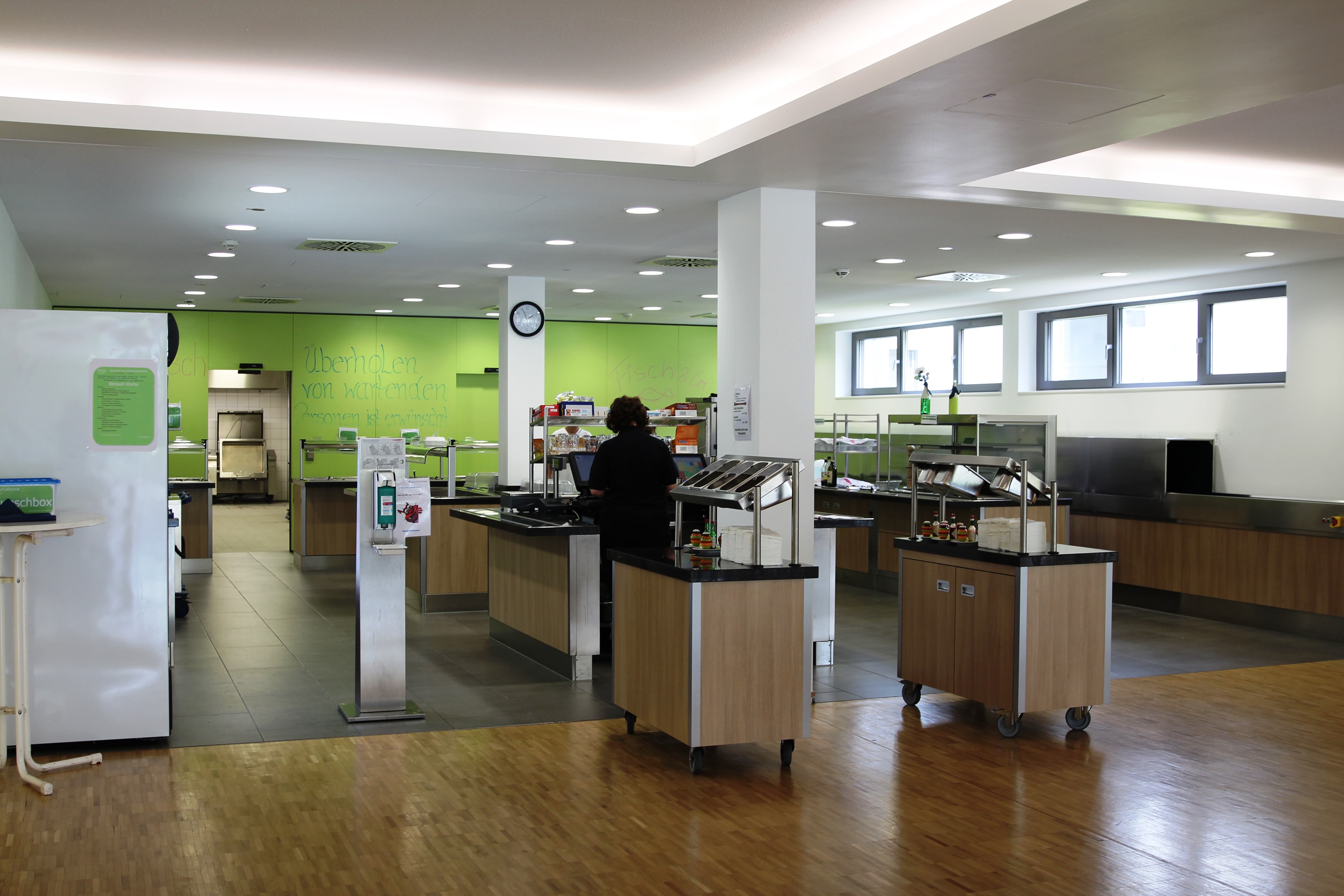 In der Mensa gibt es an jedem Werktag zwischen 11.30 und 14.30 Uhr frisch zubereitete Speisen. Da ein voller Bauch nicht gern studiert, kann sich dort jeder Studierende das Menü selbst zusammenstellen.