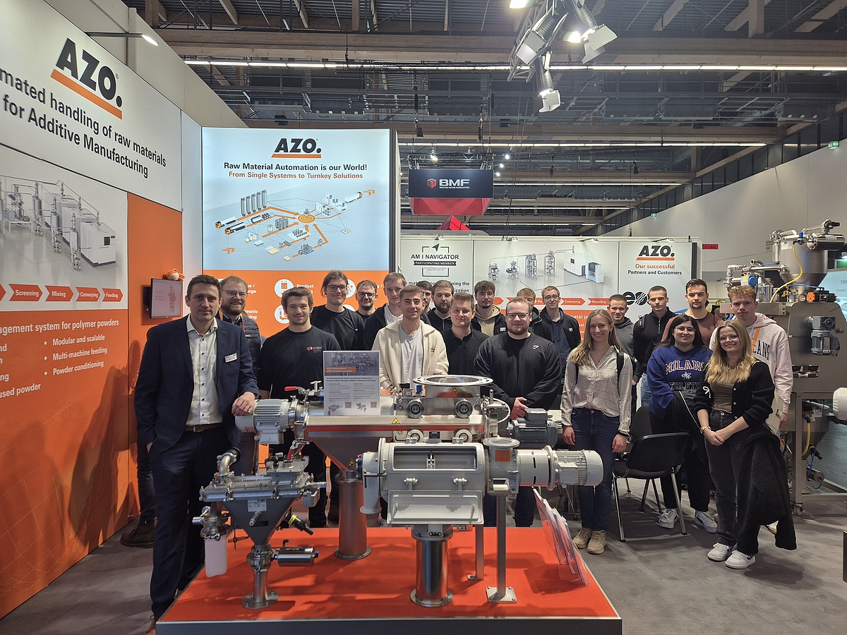 Die Studierenden des Studiengangs Maschinenbau besuchten im November im Rahmen des Moduls „Konstruktions- und Entwicklungstechnik“ die Formnext, eine führende Messe für Additive Fertigung. Das Partnerunternehmen AZO gab am eigenen Stand Einblicke in aktuelle Technologien und Unternehmensprojekte. Anschließend bearbeiteten die Teilnehmenden verschiedene Projektaufgaben direkt auf der Messe, deren Ergebnisse in der folgenden Vorlesung vorgestellt wurden.