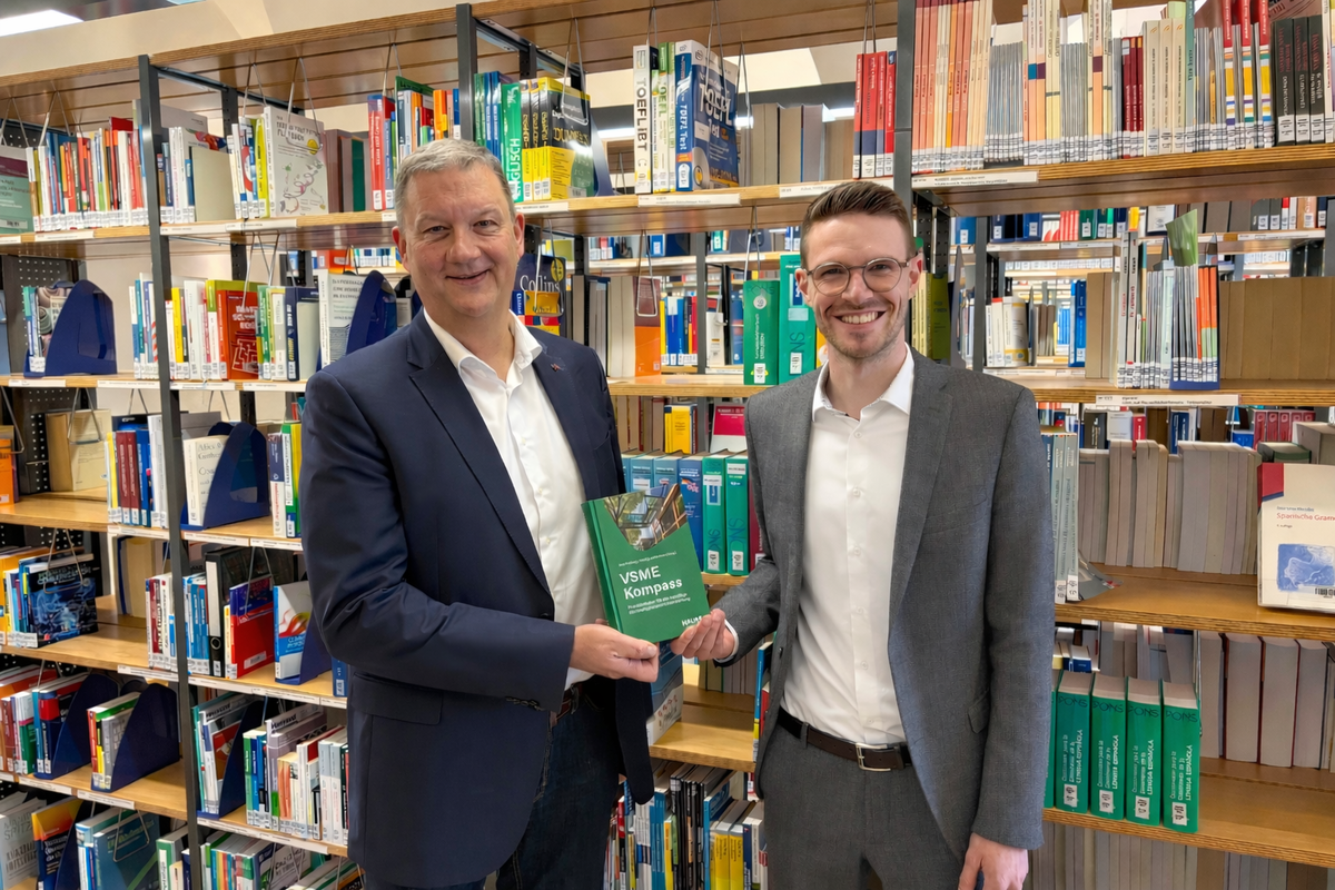 Im Haufe Verlag ist mit dem „VSME Kompass" das erste deutschsprachige Praxiswerk erschienen, das kleine und mittlere Unternehmen (KMU) gezielt bei der freiwilligen Nachhaltigkeitsberichterstattung nach dem VSME-Standard in der Fassung der EU-Empfehlung unterstützt. Einen wesentlichen Teil des neuen Werks haben Prof. Dr. Jens Schütte und Jonas Dickel vom Campus Bad Mergentheim der Dualen Hochschule Baden-Württemberg (DHBW) Mosbach beigesteuert.