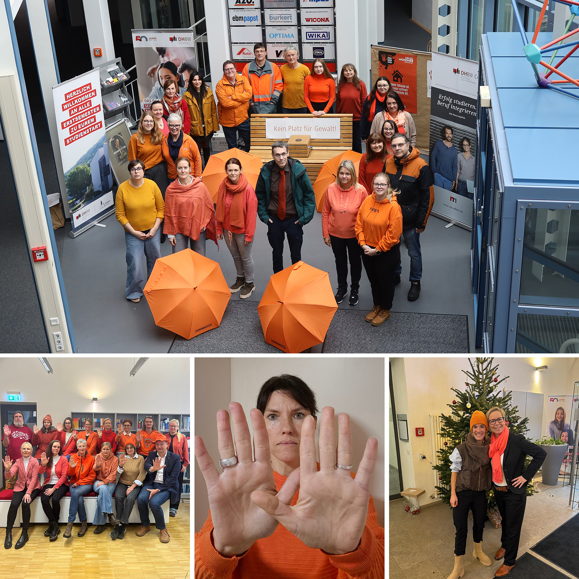 Am 25. November haben sich sowohl die DHBW Mosbach als auch der Campus Bad Mergentheim am internationalen Aktionstag „Stoppt – Gewalt gegen Frauen“ beteiligt und damit ein deutliches Zeichen gegen geschlechtsspezifische Gewalt gesetzt. Mitarbeitende aus Lehre und Verwaltung sowie Studierende trugen an beiden Standorten orangefarbene Kleidung und unterstützen so sichtbar die weltweite UN‑Kampagne „Orange the World“ von UN Women.