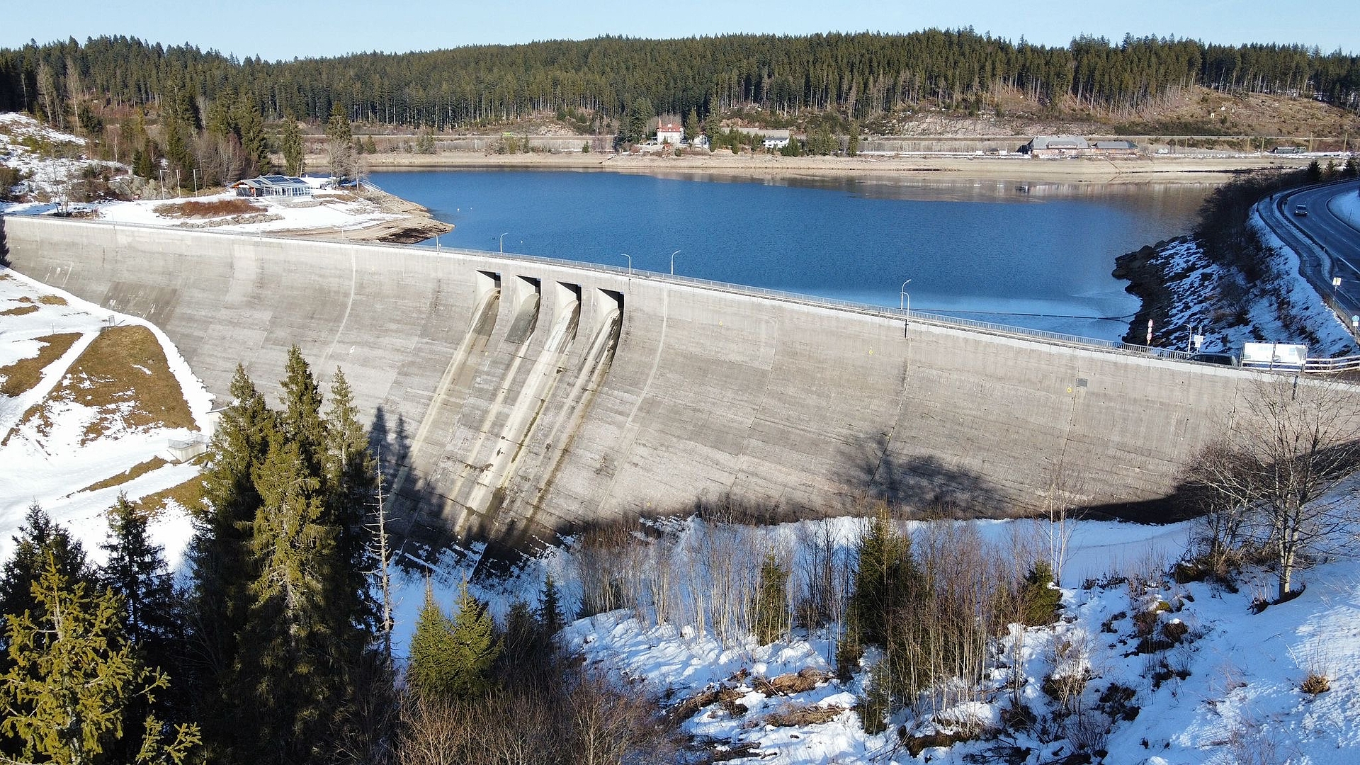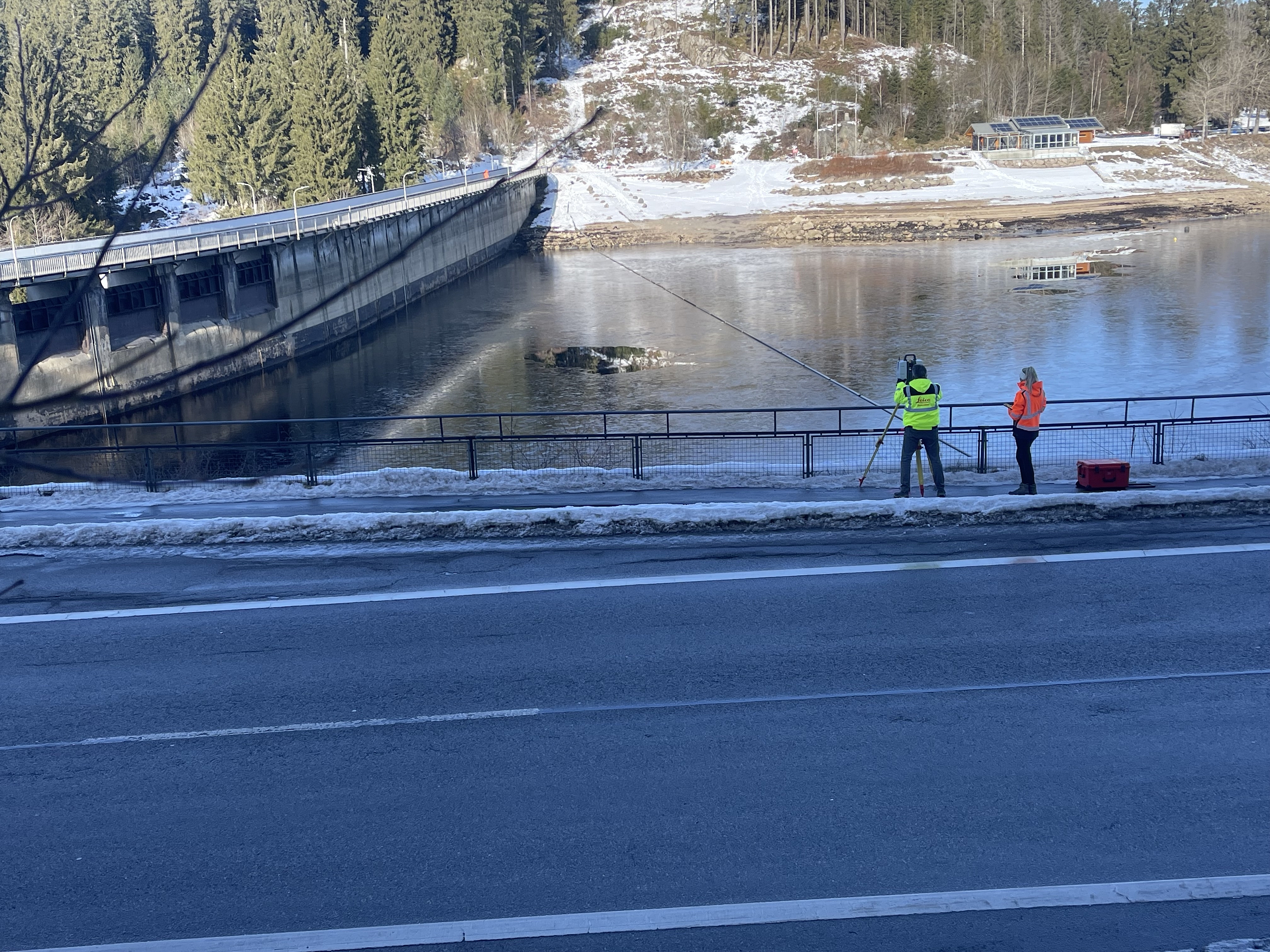 Im Rahmen ihrer Studienarbeit im Studiengang Bauingenieurwesen - Öffentliches Bauen führte Isabell Zeller aus dem Kurs ÖB23 gemeinsam mit dem betreuenden Dozenten Elmar Pfeiffer Mitte Januar Laserscans an der Staumauer des Schluchsees im Schwarzwald durch. Hier kamen der Leica-Scanner P50 mit einer Reichweite von 1000m und die Totalstation Trimble SX12 zum Einsatz. Mit beiden Systemen wurde die Staumauer jeweils landseitig und wasserseitig gescannt.
