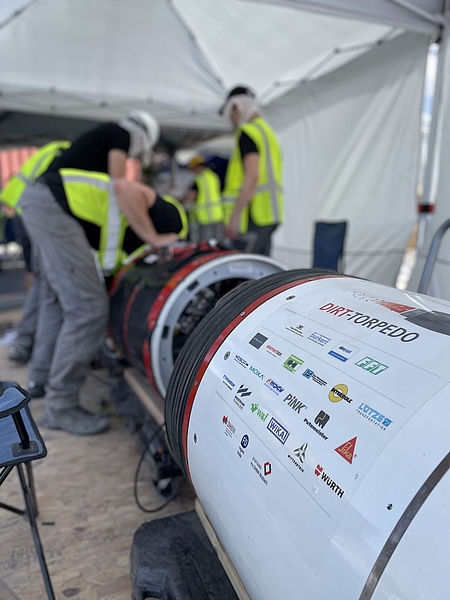 Das Rennen um die schnellste Tunnelbohrmaschine der Welt endete überraschend: Nur eines der angereisten acht Teams erhielt die Starterlaubnis. Studenten der DHBW Mosbach und Ravensburg hatten ihren Dirt-Torpedo zwar erfolgreich an die Startlinie gebracht, durften ihn jedoch nicht in der Erde versenken.