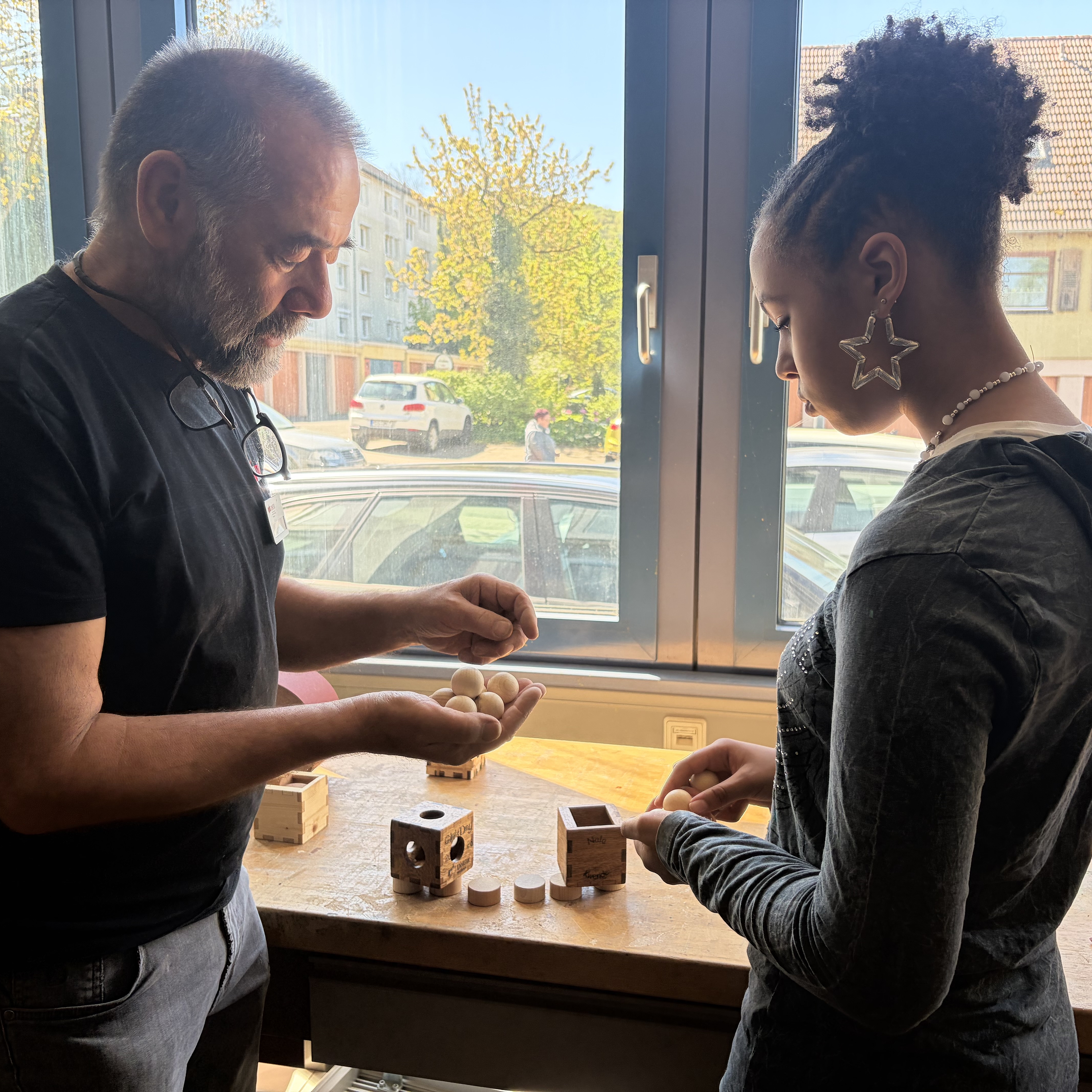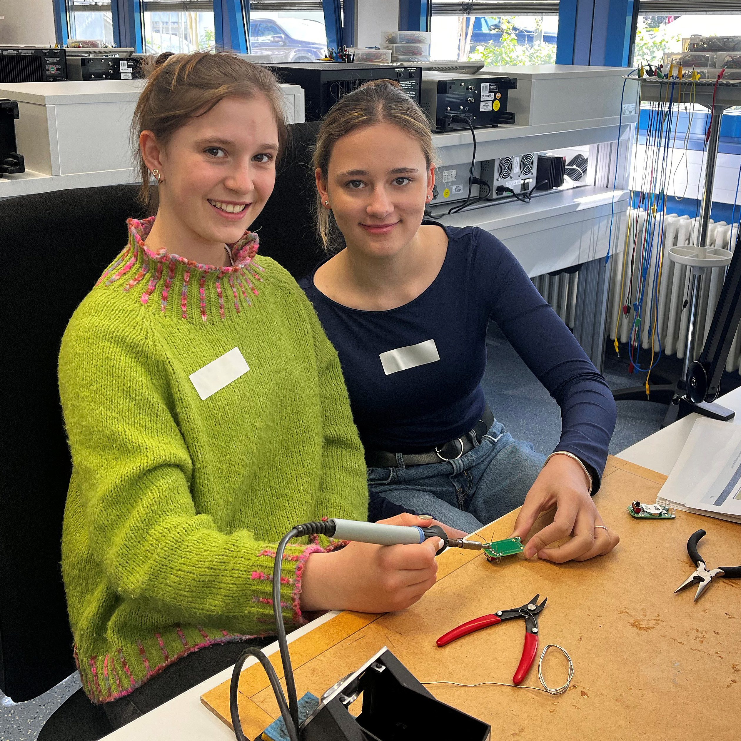 Am Campus Mosbach verteilten sich knapp 60 Schülerinnen ab der fünften Klasse auf sechs Workshops verteilten. Gleich an mehreren Stationen war Fingerspitzengefühl gefragt: Beim Bau eines kleinen E-Käfers aus Zahnbürstenköpfen wurde fleißig gelötet, und ganz nebenbei lernten die Mädchen etwas über Strom und Elektronik, während sie Widerstände auf kleinen Platinen befestigten. Auch beim Arbeiten mit Beton und Holz war Geschick gefordert, um ein personalisiertes Puzzle zu fertigen, Dübel zu setzen und zu bohren.