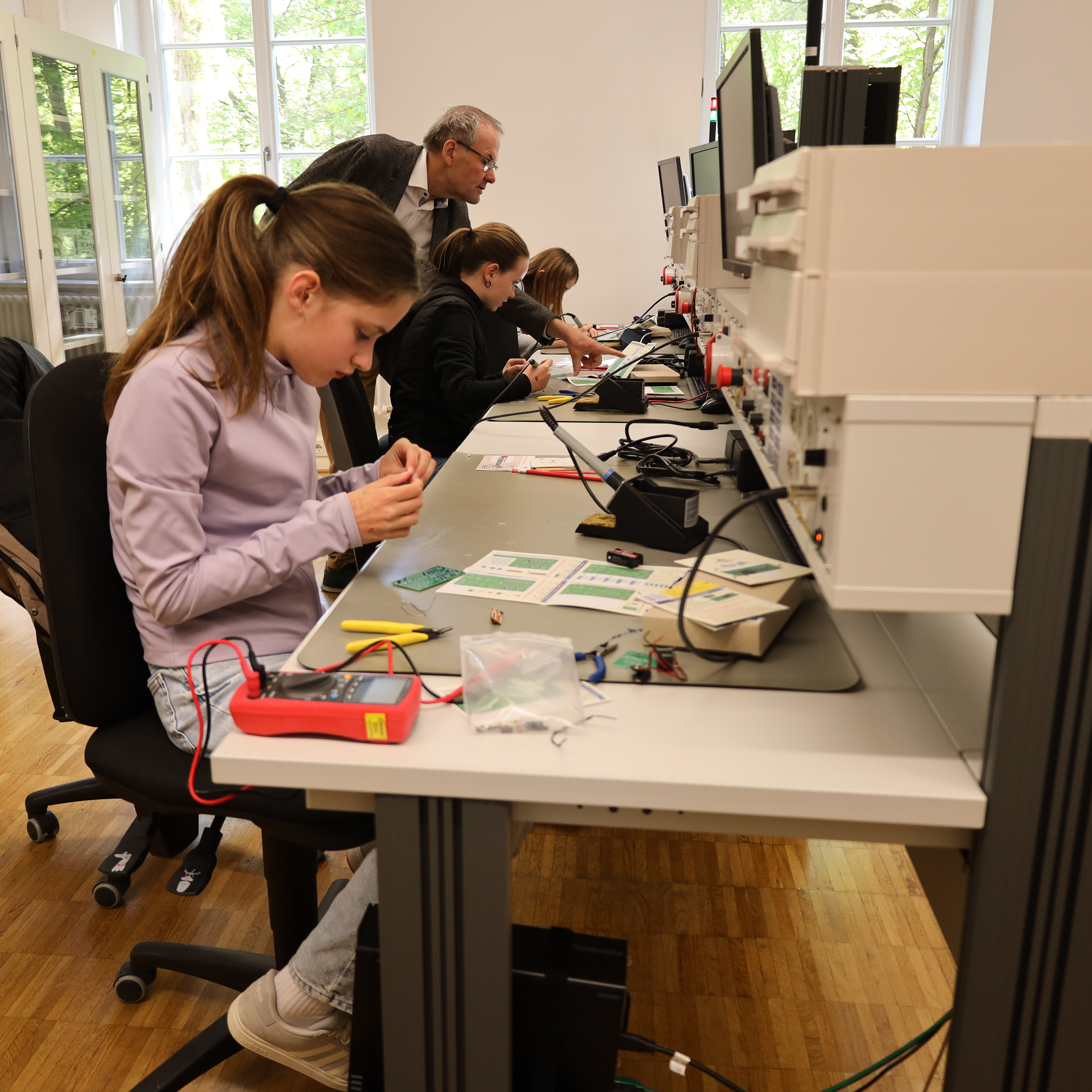 Am Campus Bad Mergentheim tauchten 28 Schülerinnen in insgesamt drei Workshops der Studiengänge Angewandte Informatik und Wirtschaftsingenieurwesen einzutauchen. Wer mutig genug war, griff zum Lötkolben: Beim Zusammenbau einer Alarmanlage aus Platinen, einer Lichtschranke und verschiedenen Bauteilen wurde aus Theorie ganz schnell Praxis. Im Smart-Home-Workshop programmierten die Mädchen Sprachbefehle, um Lampen intelligent zu steuern.