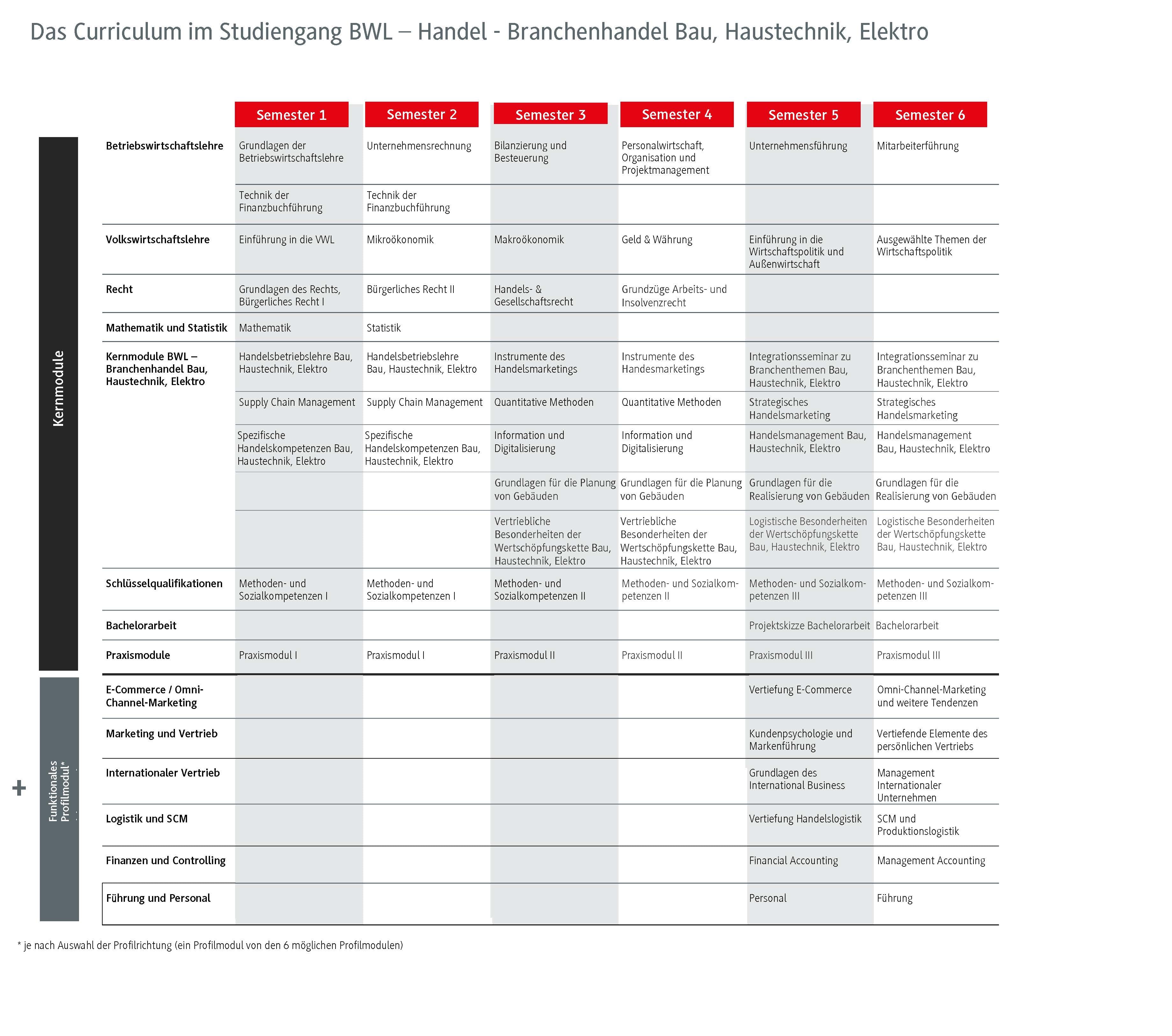 Aktuelles Curriculum des Studiengangs BWL - Branchenhandel Bau, Haustechnik, Elektro