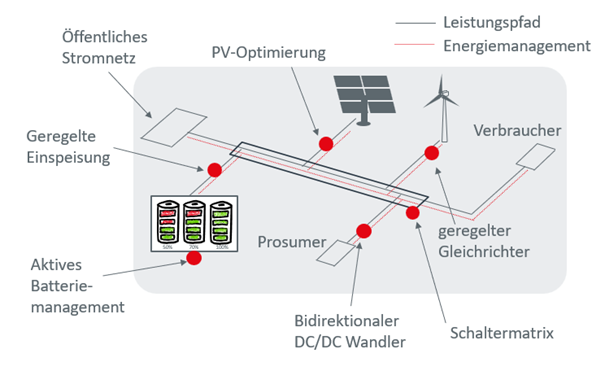 Ein zentraler Bestandteil des Projekts ist zudem die Entwicklung intelligenter Energiemanagementsysteme. Diese ermöglichen eine dynamische und bedarfsgerechte Steuerung von Energieflüssen, ein optimiertes Lastmanagement, die Integration von Speichersystemen sowie die effiziente Nutzung lokal erzeugter Energie. Ziel ist es, Energieflüsse transparent, flexibel und wirtschaftlich zu gestalten, Lastspitzen zu reduzieren und die Eigenverbrauchsquote nachhaltig zu erhöhen.